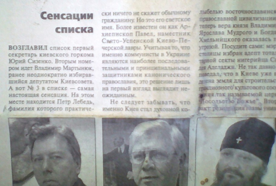 …А вот № 3 в списке – самая настоящая сенсация. На этом месте находится Павел Лебедь, фамилия которого практически ничего не скажет обычному гражданину. Но это его светское имя. Более он известен как Архиепископ Павел, наместник Свято-Успенской Киево-Печерской Лавры».
