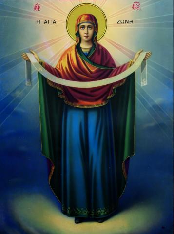 Чудное восхищение св. Андрея кончилось. Он снова оказался на земле и здесь, действительно, удостоился видеть Богоматерь. В один из воскресных дней он был при Богослужении во Влахернском храме. И когда возвел очи свои горе, вдруг увидел необыкновенное зрелище. Увидел Богоматерь с Предтечею и Иоанном Богословом, окруженную множеством святых и ангелов Божиих, со слезами молящуюся пред Сыном Своим за весь род человеческий и простирающую над ним в знамение невидимого благодатного покрова священное свое одеяние – «мафорий».