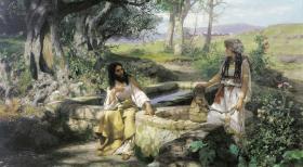 Спаситель сидел, утомившись от пути, у колодца Иакова. Пришла женщина-самарянка набрать воды и, когда Господь сказал ей: «дай Мне пить» (Ин. 4:7), то получил холодный, отчужденный ответ: «как Ты, будучи еврей , просишь пить у меня, Самарянки?» (Ин. 4:9). Это, собственно, отказ. Дальше добавлено: «ибо Иудеи с Самарянами не соприкасаются». Но тут не совсем ясно: слова ли это самарянки, добавочные, или евангелист написал для пояснения читателю. Так или иначе, несмотря на этот почти отказ, на эту холодность и отчужденность ответа, Господь не прекратил беседу с ней. Уже после Его следующих слов, мы видим, как тон речи этой самарянки резко изменился. Он ей сказал: «если бы ты ведала дар Божий и Кто говорит с тобою ты бы сама просила у Него, и Он дал бы тебе воду живую» (Ин. 4:10). Оказалось, что хотя эта самарянка была большая грешница, как видно из дальнейшего, но под корой страстей и греха билось живое сердце. И это живое сердце почувствовало, что перед ней Некто, совсем необыкновенный Человек. Она сразу меняет тон, говоря: Господин, у Тебя почерпала нет, колодец глубок, откуда Ты можешь взять живую воду? Или Ты больше отца нашего Иакова, который нам дал этот водный источник? (Ин. 4:11, 12). Дальше Господь беседует с ней об этой воде живой и, в конце концов, Своей мудрой, любви исполненной беседой, приводит ее наконец к такой фразе: «знаю, что когда придет Мессия, то есть Христос Он возвестит нам вся» – Он нам все объяснит, все расскажет. И слышит ответ: «это Я, Который говорит с тобой» (Ин. 4:25, 26)!