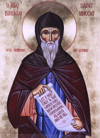 Для опредѣленія истиннаго ученія Церкви онъ предписываетъ обращаться къ древности, къ древнимъ и уважаемымъ отцамъ и учителямъ церковнымъ, а также къ соборнымъ рѣшеніямъ, а не къ позднѣйшимъ писателямъ, мнѣнія которыхъ должны быть сличаемы съ ученіемъ древности, при этомъ нужно отличать общее, единодушное ученіе древнихъ отцевъ отъ ихъ личныхъ мнѣній (см. гл. 26). «Вѣрить имъ (т. е., отцамъ и учителямъ) должно по такому правилу: что только или всѣ они, или большинство ихъ единомысленно принимали, содержали, передавали открыто, часто, непоколебимо, какъ будто по какому предварительному согласію между собою учителей, то почитать несомнѣннымъ, вѣрнымъ, непререкаемымъ; а о чемъ мыслилъ кто, святый ли онъ или ученый, исповѣдникъ ли или мученикъ, не согласно со всѣми или даже противорѣча всѣмъ, то относить къ мнѣніямъ личнымъ, сокровеннымъ, частнымъ, и отличать отъ достоинства общаго, открытаго, всенароднаго вѣрованія» (тамъ же). Викентію Лиринскому также чужда мысль о тожествѣ непогрѣшимой Церкви съ клиромъ или, лучше, съ личностью папы. И хранителемъ Преданія является, по нему, вся Церковь, а не одинъ клиръ. По его словамъ, истинное апостольское Преданіе есть предметъ «всенароднаго вѣрованія» (гл. 28), «всенародной передачи» (гл. 28).