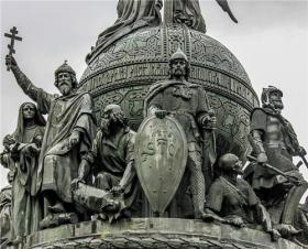 Камень краеугольный, съ котораго не сдвинешь Новгородъ – неповторимая въ своей первозданной громадѣ Св. Софія. Если добрыми гра́жданами возвращаются домой вата́жники; если стихаютъ волны столичнаго мятежа́; если изъ поколѣнія въ поколѣніе привычно правитъ народомъ вы́борная родови́тая старшнна; если удерживается надъ во́льницей спасительный покровъ кня́жескрй власти, причина тому одна: «до́момъ Св. Софіи» ощущаетъ себя Новгородъ. Отсюда непререкаемость авторитета Архіепископа, отсюда то, что при всей своей особой ста́ти – Руской Землею остается Новгородъ, и́бо къ Руской Церкви принадлежитъ Владыка.