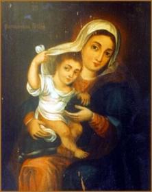 На этой иконе, по описанию духовника обители священномученика епископа Арсения (Жадановского) «Божия Матерь головным платком прикрывает и как бы от кого защищает Богомладенца, а Он держит в руке кисть винограда – эмблему Святого Причащения, при котором не страшны никакие невзгоды...»