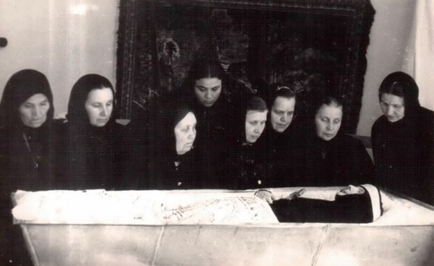 Похорон монаха Иоанна. Первая слева стоит инокиня Рафаила, третья - монахиня Нина, четвёртая - монахиня Сидония.